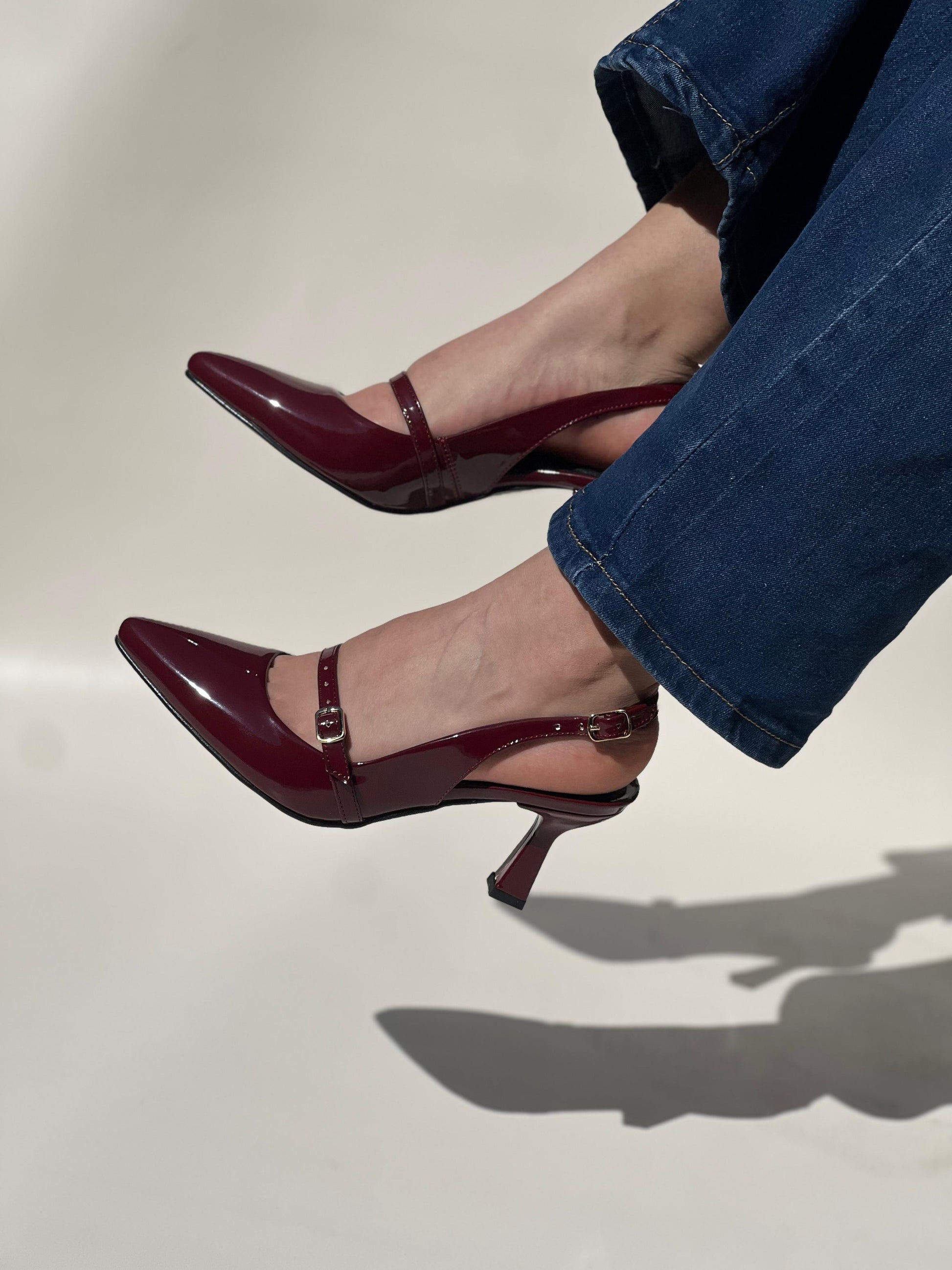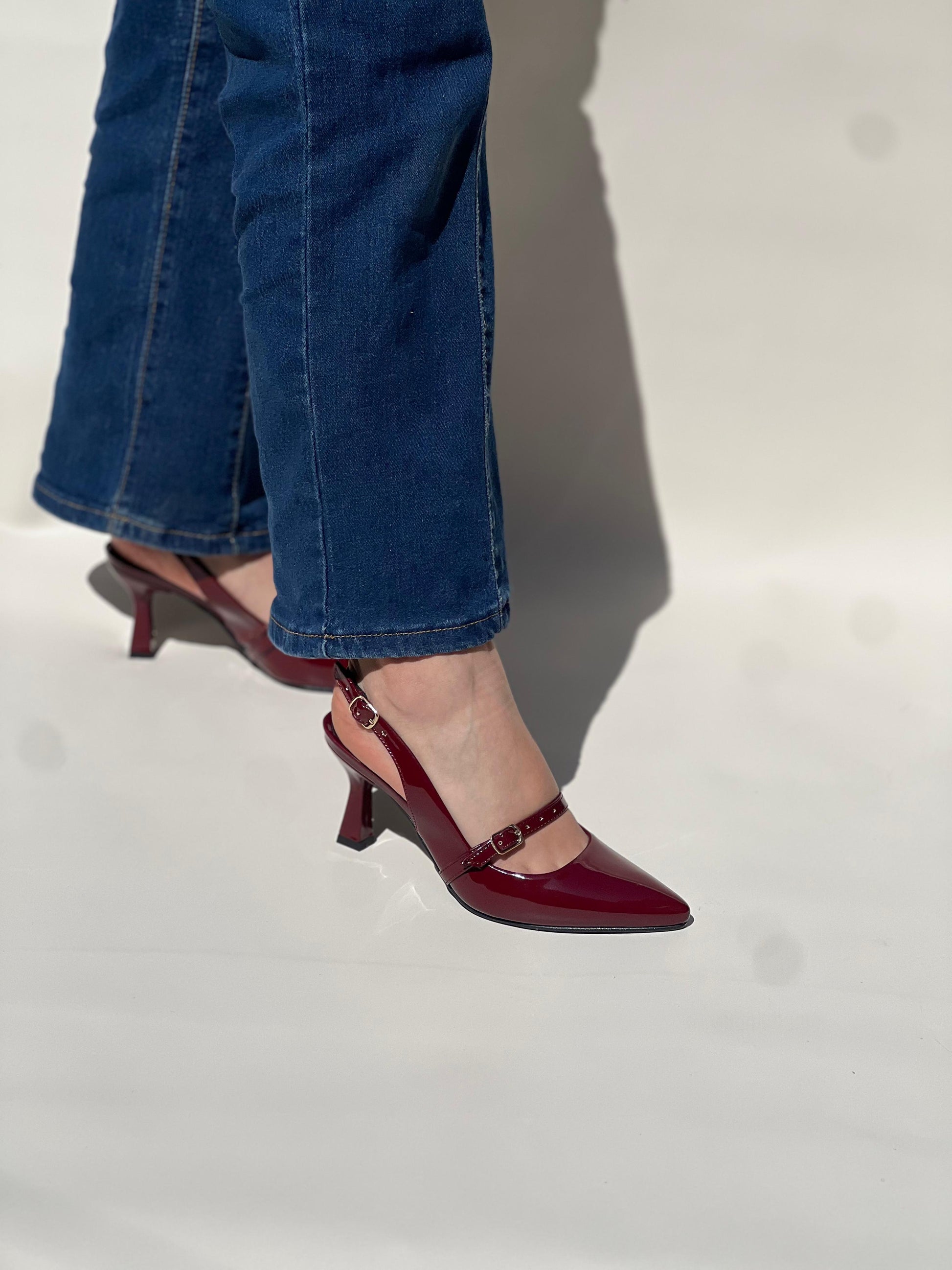 El tacón de 8 cm , con una forma sutilmente curvada, proporciona altura y comodidad sin sacrificar estabilidad. La tira ajustable en el talón garantiza un ajuste seguro y personalizado. Disponible en colores versátiles como negro y vino, es el complemento ideal para realzar tanto outfits casuales como más formales.