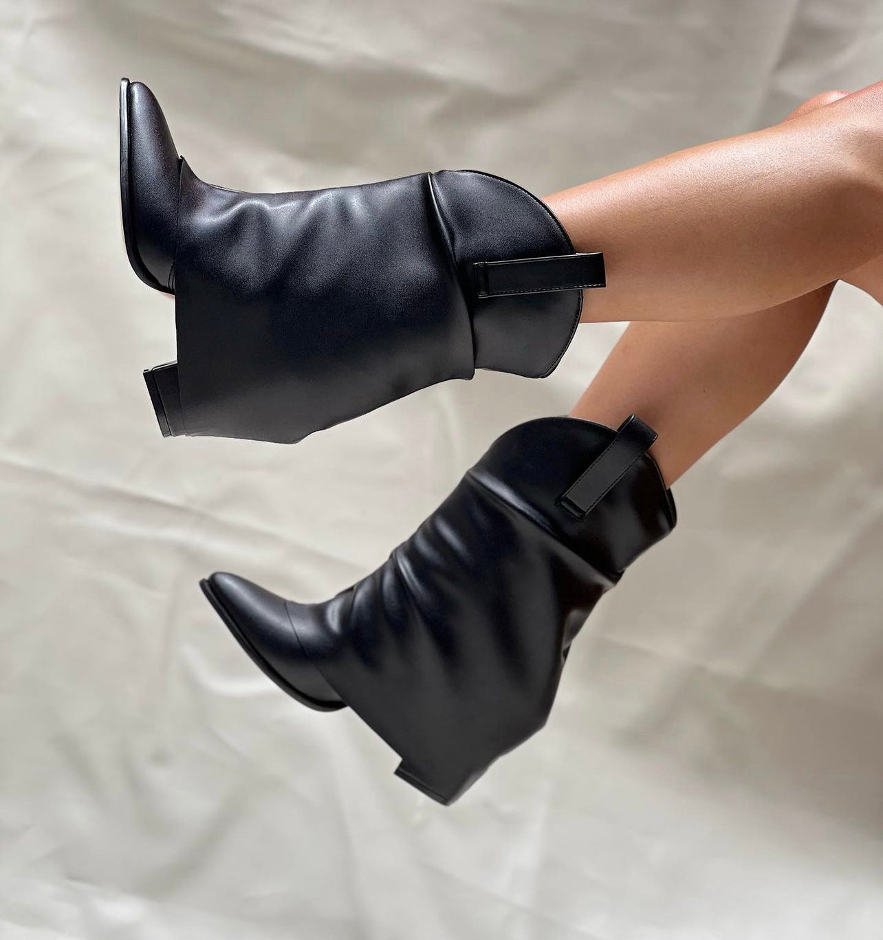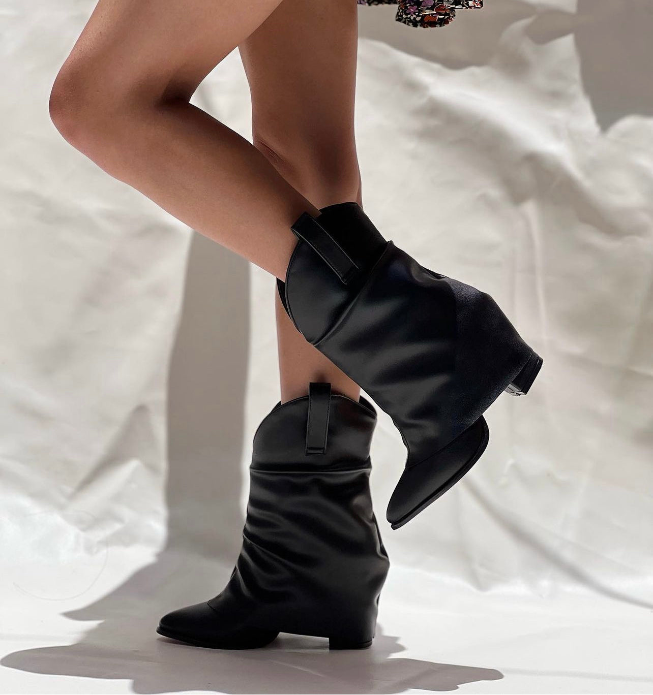 Bota estilo vaquero, tacón de 9 cm estilo vaquero, punta picuda sin cierre y capa