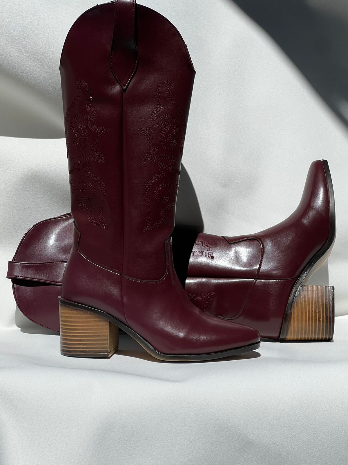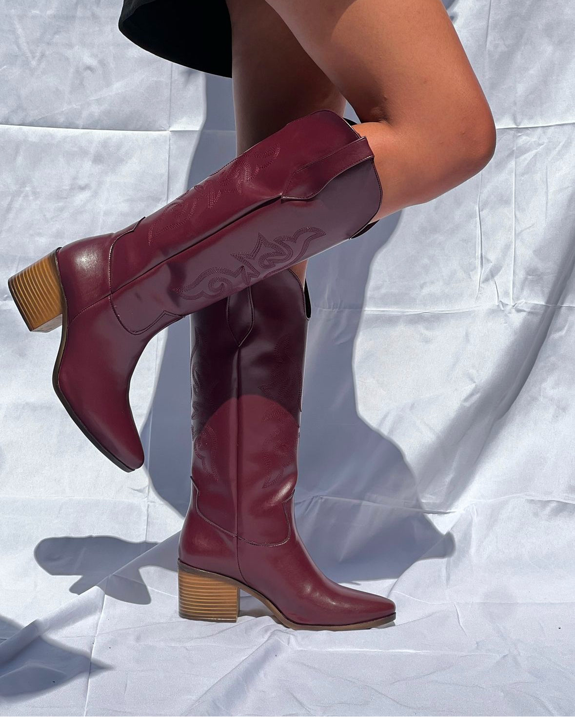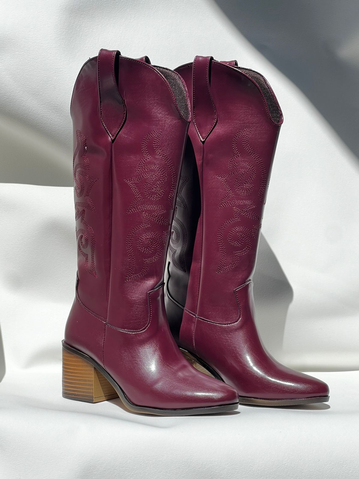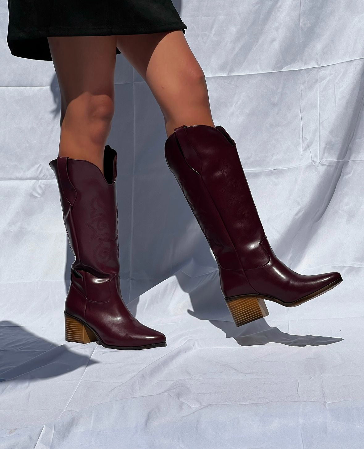 Bota estilo vaquero, tacón de 6 cm estilo vaquero, punta semi picuda, sin cierre