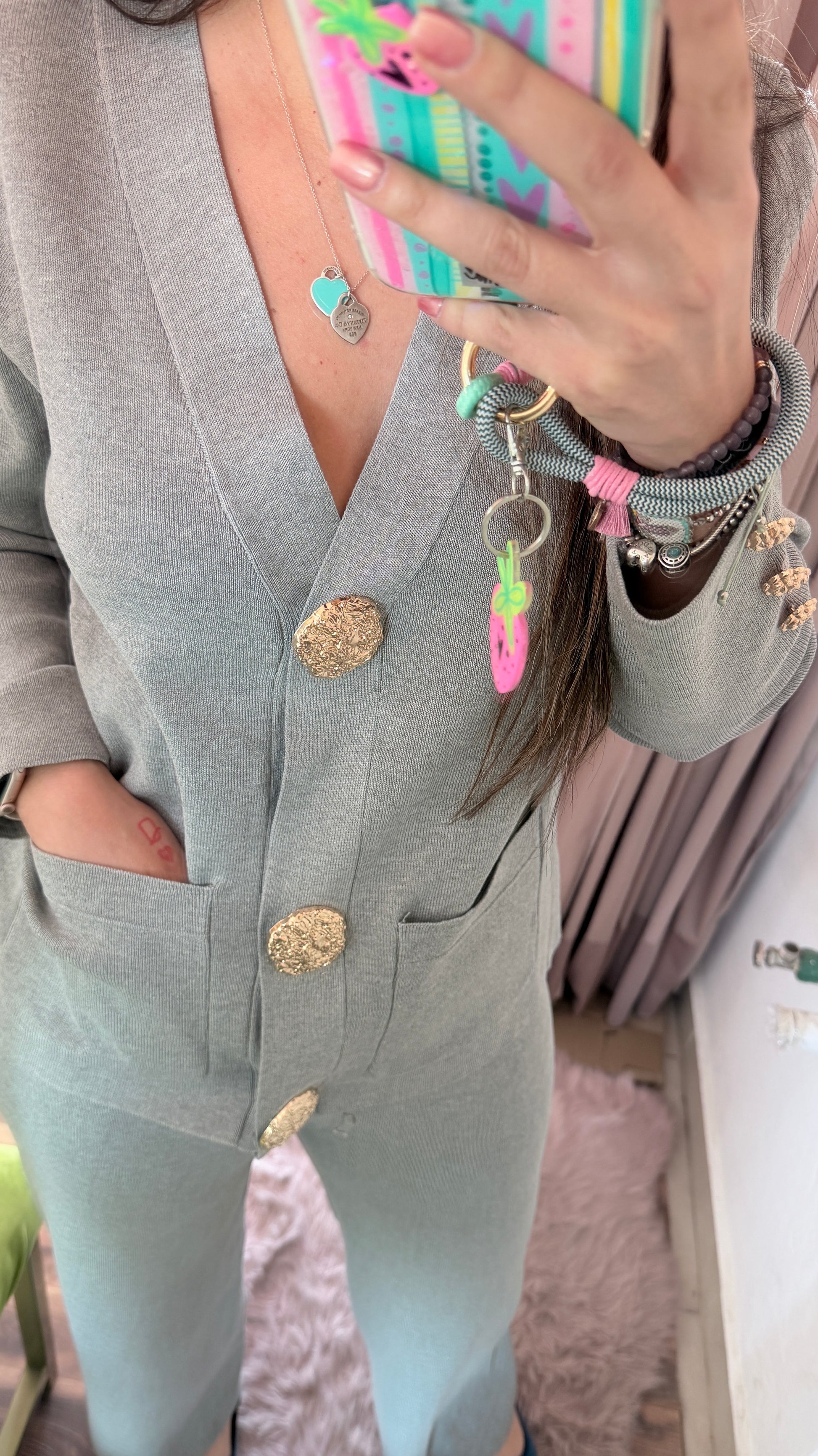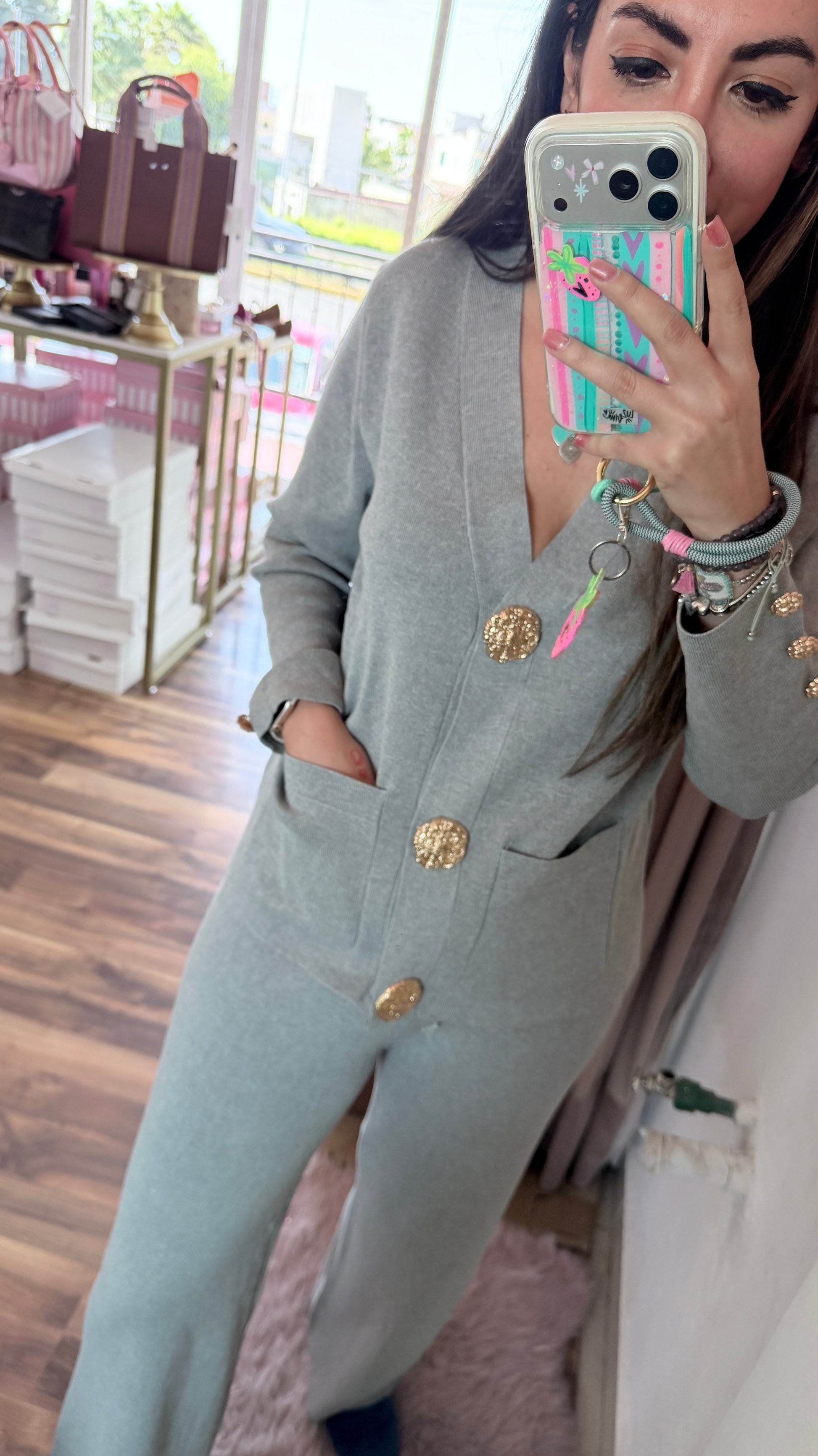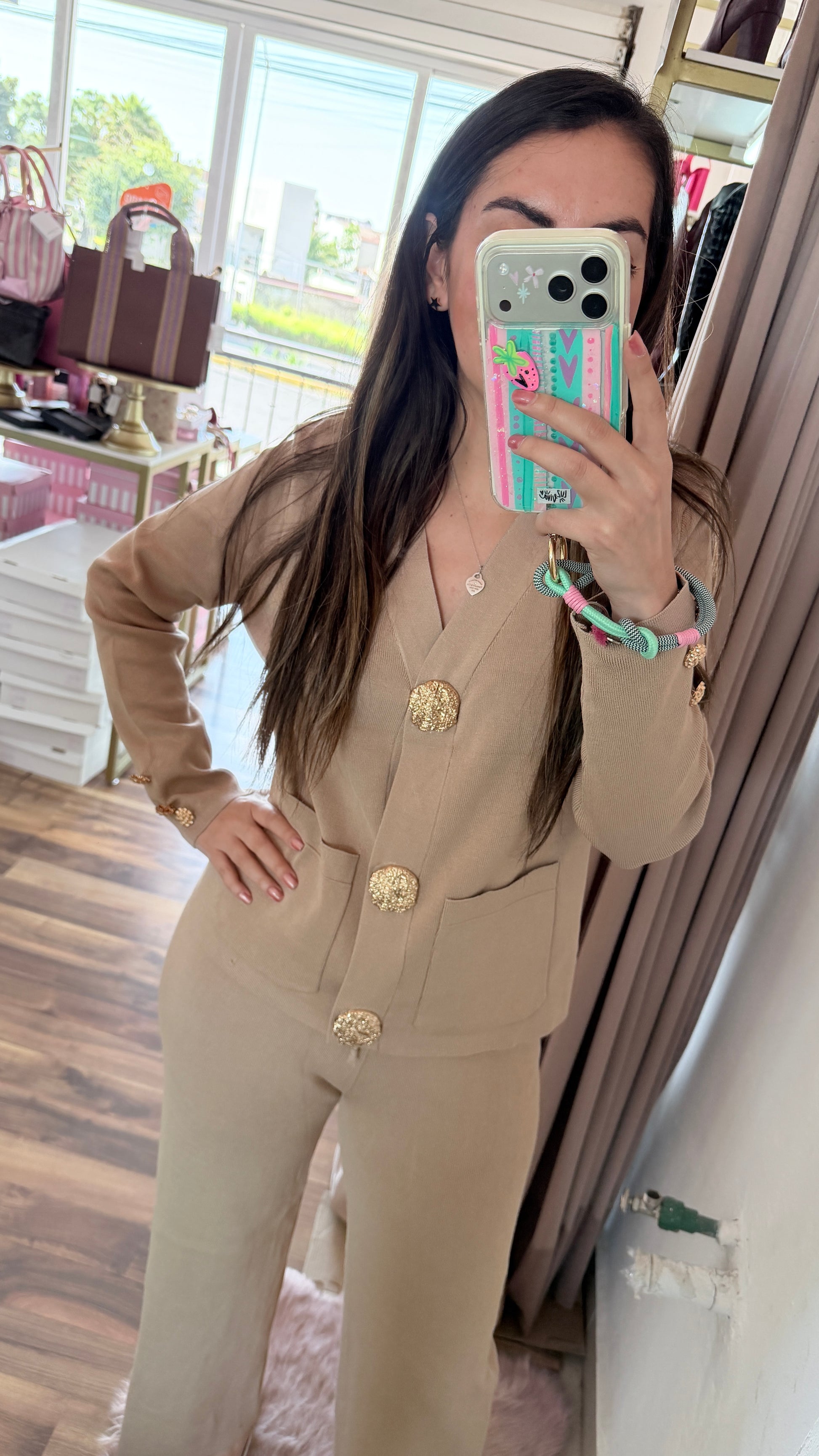 🧶 Suéter tipo cardigan con botones grandes dorados que le dan un toque súper elegante.