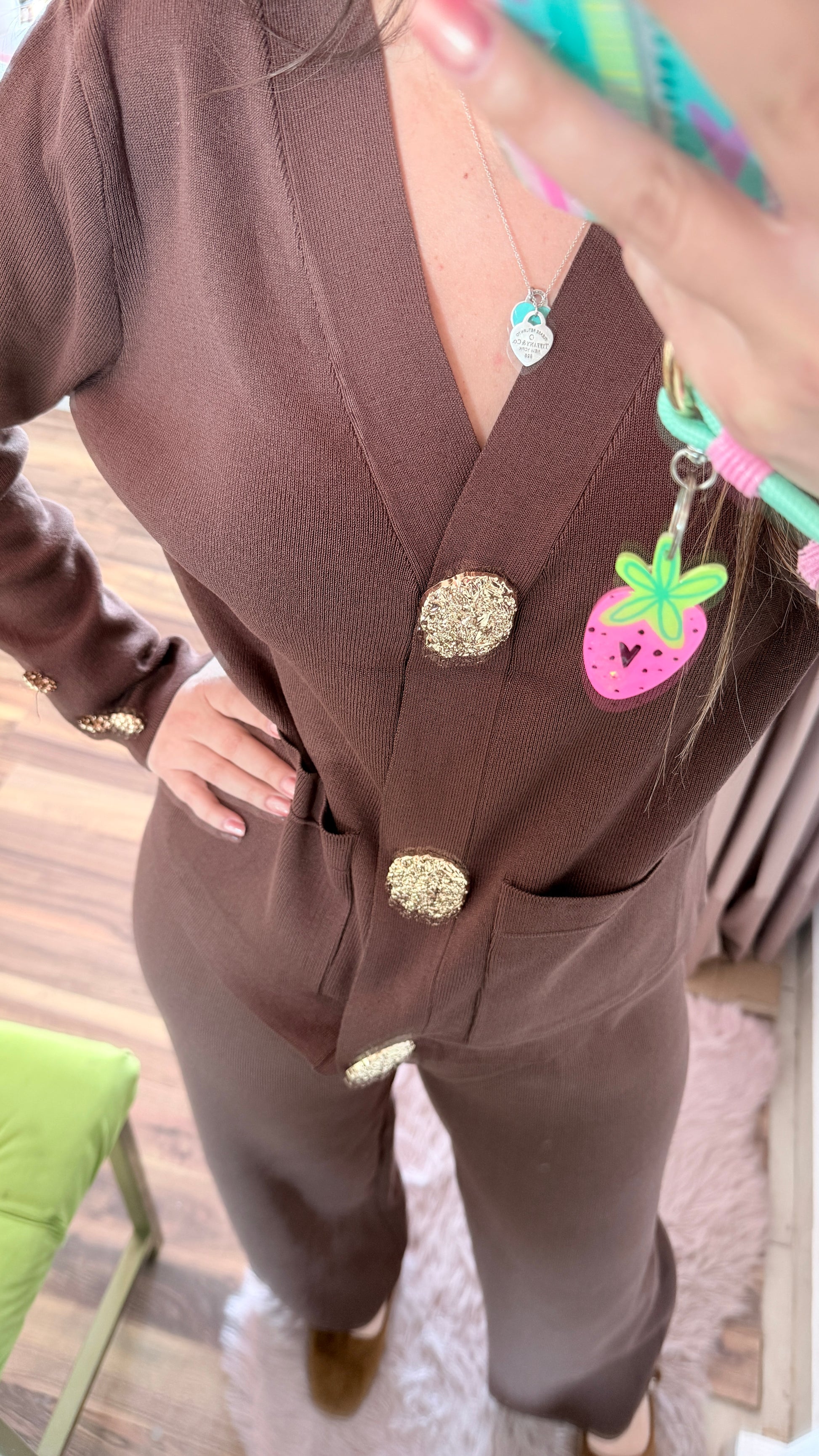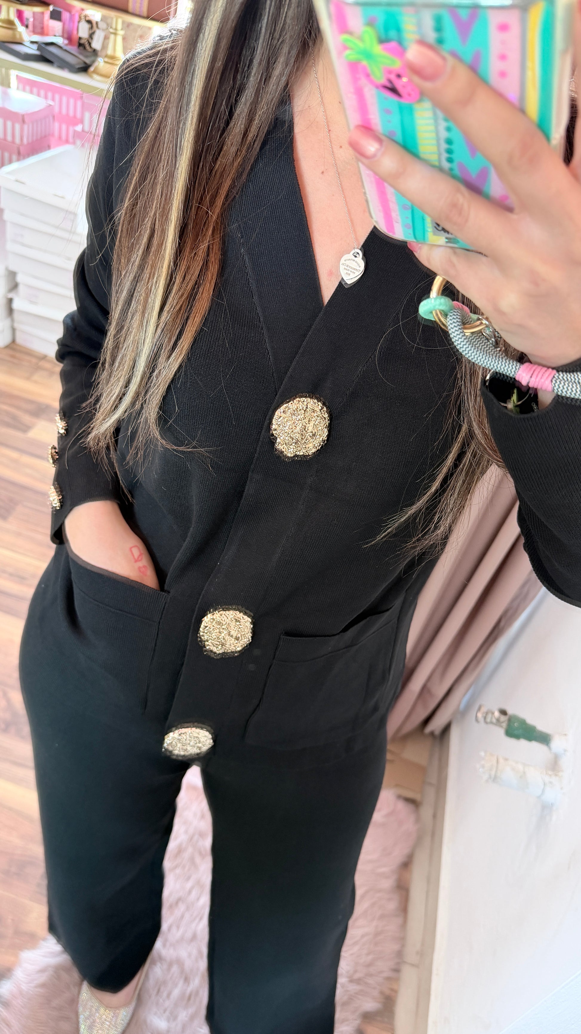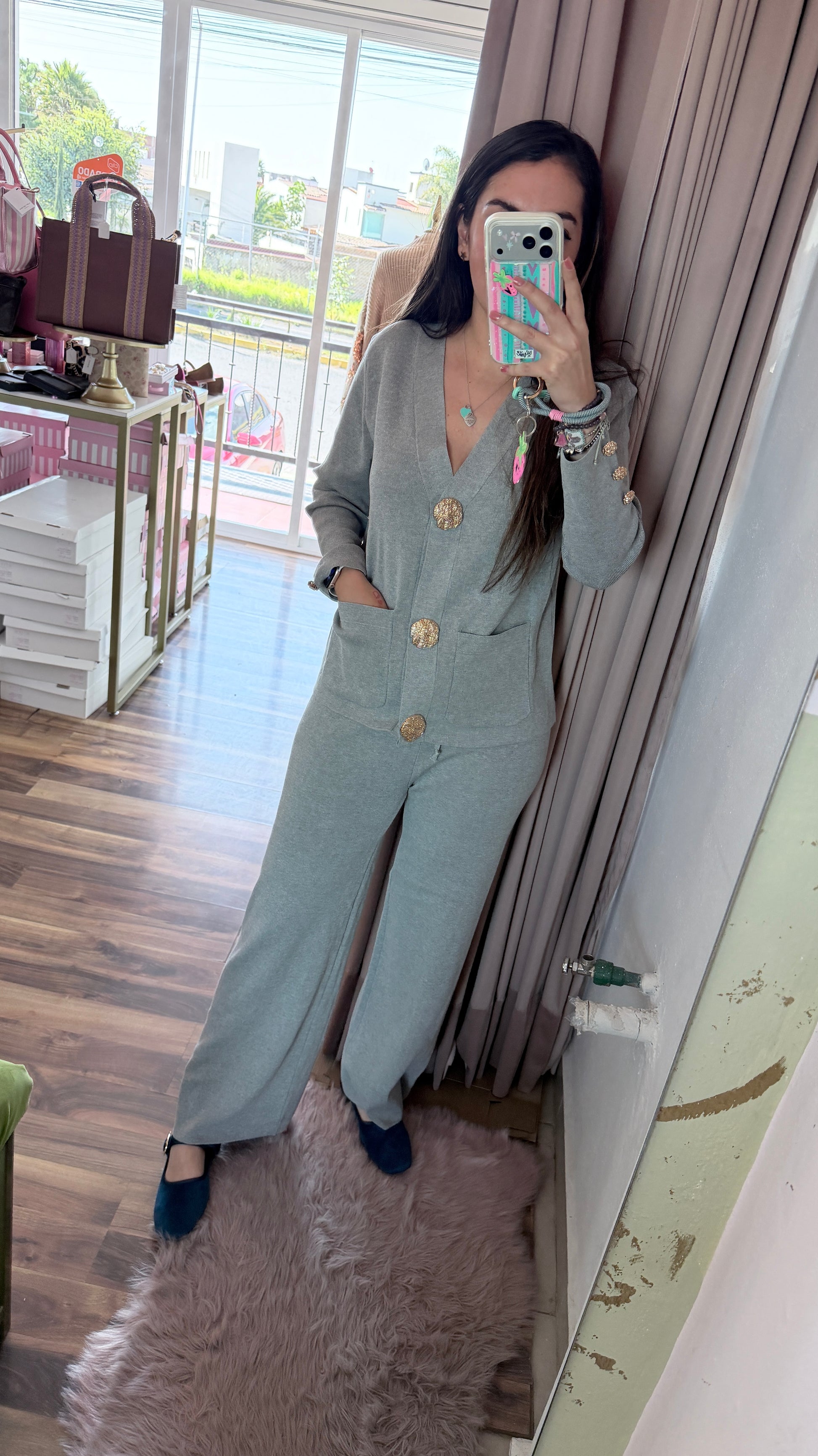 🧶 Suéter tipo cardigan con botones grandes dorados que le dan un toque súper elegante.
