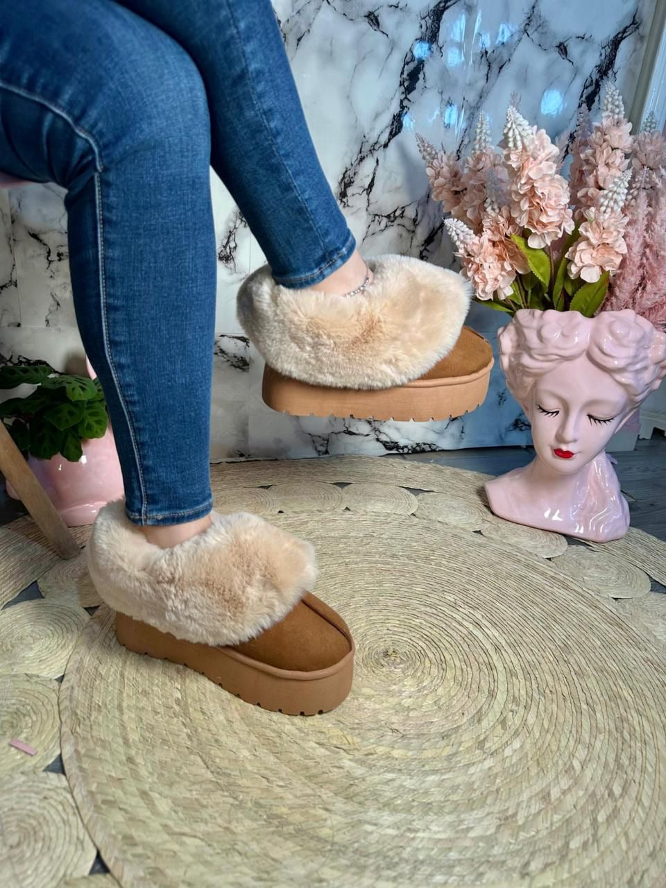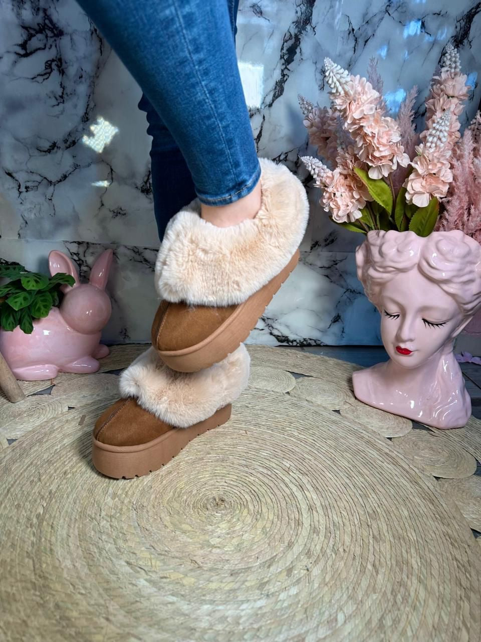un upgrade a tus días de descanso con nuestras pantuflas Élite Cozy Platform. 🩷